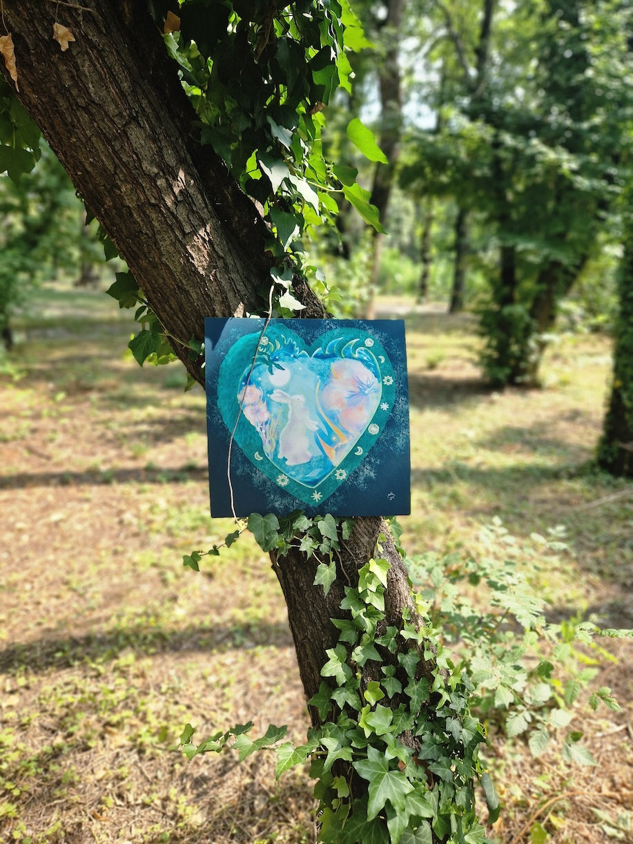 These are museum-quality giclée prints — created using advanced techniques and high-pigment quality inks to faithfully carry every stroke, nuance, subtlety, and depth of the original work. Each print becomes a soulful extension of the artwork, a tiny treasure and magic keeper to live and accompany one’s home and heart. While the process is not inherently eco, it is eco-conscious. It invites a relationship of care and intentionality, moving away from disposables and fast cycles toward trusted stewardship and longevity.